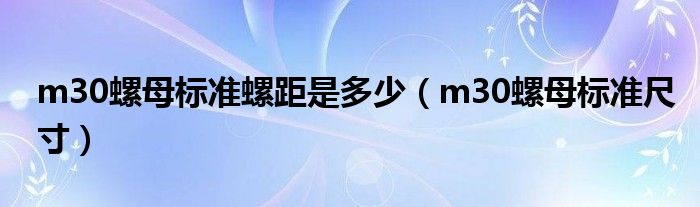 关于m30螺母标准螺距是多少,m30螺母标准尺寸这个很多人还不知道,今天菲菲来为大家解答以上的问题,现在让我们一起来看看吧!