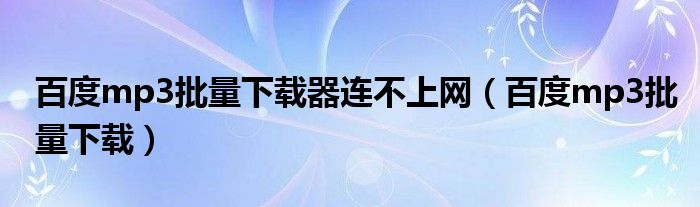 大家好,来宝来为大家解答以下问题,百度mp3批量下载器连不上网,百度mp3批量下载很多人还不知道,今天让我们一起来看看吧!