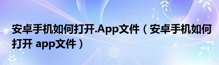 大家好,小晋来为大家解答以下问题,关于安卓手机如何打开.App文件,安卓手机如何打开 app文件很多人还不知道,今天让我们一起来看看吧!