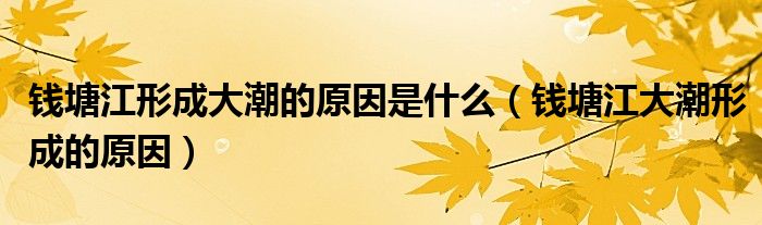 关于钱塘江形成大潮的原因是什么,钱塘江大潮形成的原因这个很多人还不知道,今天菲菲来为大家解答以上的问题,现在让我们一起来看看吧!