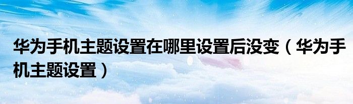 大家好,小晋来为大家解答以下问题,关于华为手机主题设置在哪里设置后没变,华为手机主题设置很多人还不知道,今天让我们一起来看看吧!