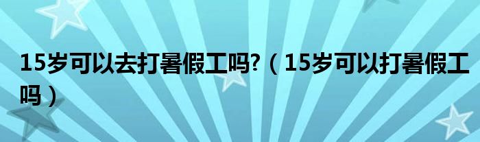 大家好,小晋来为大家解答以下问题,关于15岁可以去打暑假工吗?,15岁可以打暑假工吗很多人还不知道,今天让我们一起来看看吧!