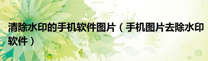 大家好,小晋来为大家解答以下问题,关于清除水印的手机软件图片,手机图片去除水印软件很多人还不知道,今天让我们一起来看看吧!