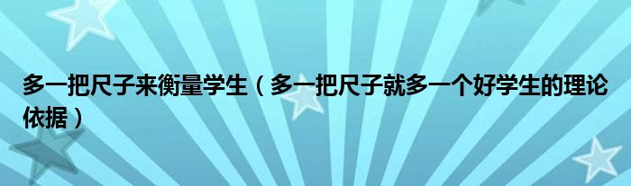 关于多一把尺子来衡量学生,多一把尺子就多一个好学生的理论依据这个很多人还不知道,今天菲菲来为大家解答以上的问题,现在让我们一起来看看吧!