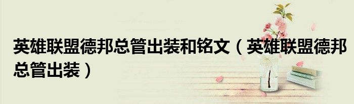 大家好,来宝来为大家解答以下问题,英雄联盟德邦总管出装和铭文,英雄联盟德邦总管出装很多人还不知道,今天让我们一起来看看吧!