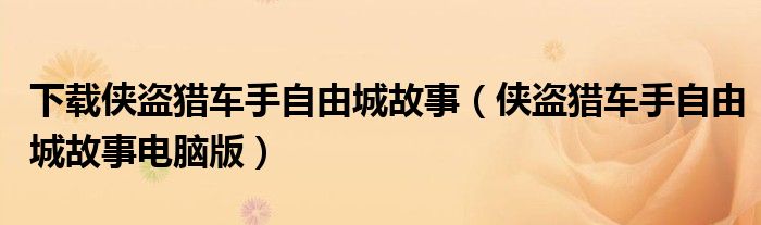 关于下载侠盗猎车手自由城故事,侠盗猎车手自由城故事电脑版这个很多人还不知道,今天菲菲来为大家解答以上的问题,现在让我们一起来看看吧!