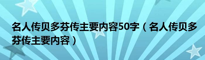 关于名人传贝多芬传主要内容50字,名人传贝多芬传主要内容这个很多人还不知道,今天菲菲来为大家解答以上的问题,现在让我们一起来看看吧!