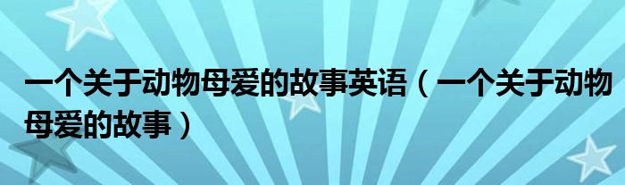 关于一个关于动物母爱的故事英语,一个关于动物母爱的故事这个很多人还不知道,今天菲菲来为大家解答以上的问题,现在让我们一起来看看吧!