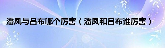 关于潘凤与吕布哪个厉害,潘凤和吕布谁厉害这个很多人还不知道,今天菲菲来为大家解答以上的问题,现在让我们一起来看看吧!