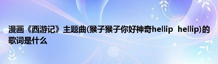 关于漫画《西游记》主题曲(猴子猴子你好神奇hellip hellip)的歌词是什么这个很多人还不知道,今天菲菲来为大家解答以上的问题,现在让我们一起来看看吧!