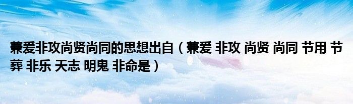 关于兼爱非攻尚贤尚同的思想出自,兼爱 非攻 尚贤 尚同 节用 节葬 非乐 天志 明鬼 非命是这个很多人还不知道,今天菲菲来为大家解答以上的问题,现在让我们一起来看看吧!