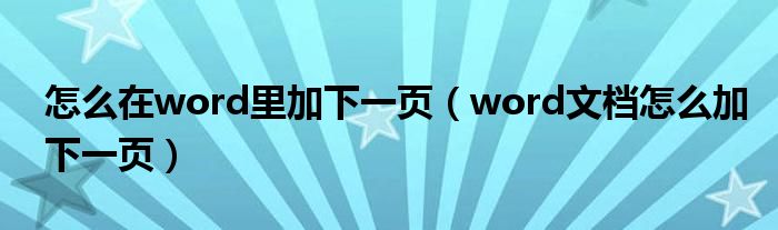 关于怎么在word里加下一页,word文档怎么加下一页这个很多人还不知道,今天菲菲来为大家解答以上的问题,现在让我们一起来看看吧!