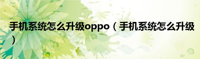 大家好,小飞来为大家解答以上问题,手机系统怎么升级oppo,手机系统怎么升级很多人还不知道,现在让我们一起来看看吧!