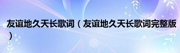 1、歌曲:友谊地久天长歌手:纯音乐 友谊地久天长---梦之旅合唱组合---lrc:sunpzh怎能忘记旧日朋友心中能不欢笑旧日朋友岂能相忘友谊地久天长友谊万岁朋友友谊万岁举杯痛饮同声歌颂友谊地久天长我们曾经终日游荡在故乡的青山上我们也曾历尽苦辛到处奔波流浪友谊万岁朋友友谊万岁举杯痛饮同声歌颂友谊地久天长music..我们也匆匆日逍遥荡桨在微波上当如今已经劳燕分飞远隔大海重洋友谊万岁万岁朋友友谊万岁举杯痛饮同声歌颂友谊地久天长我们往日情意相投让我们紧握手让我们来举杯畅饮友谊地久天长友谊万岁万岁朋友友谊万岁举杯痛饮同声歌颂友谊地久天长友谊万岁万岁朋友友谊万岁举杯痛饮同声歌颂友谊地久天长友谊万岁万岁朋友友谊万岁举杯痛饮同声歌颂友谊地久天长---end---。