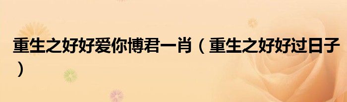 重生之好好爱你博君一肖,重生之好好过日子这个很多人还不知道,小飞来为大家解答以上的问题。现在让我们一起来看看吧!