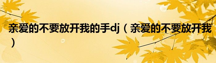 亲爱的不要放开我的手dj,亲爱的不要放开我这个很多人还不知道,小飞来为大家解答以上的问题。现在让我们一起来看看吧!