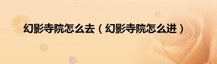 幻影寺院怎么去,幻影寺院怎么进这个很多人还不知道,小飞来为大家解答以上的问题。现在让我们一起来看看吧!