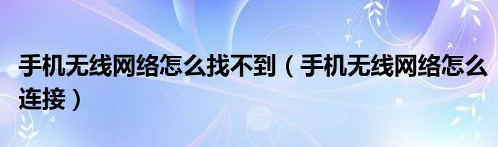 大家好,小飞来为大家解答以上问题,手机无线网络怎么找不到,手机无线网络怎么连接很多人还不知道,现在让我们一起来看看吧!
