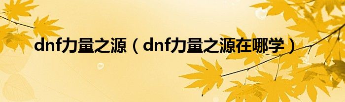 dnf力量之源,dnf力量之源在哪学这个很多人还不知道,小飞来为大家解答以上的问题。现在让我们一起来看看吧!