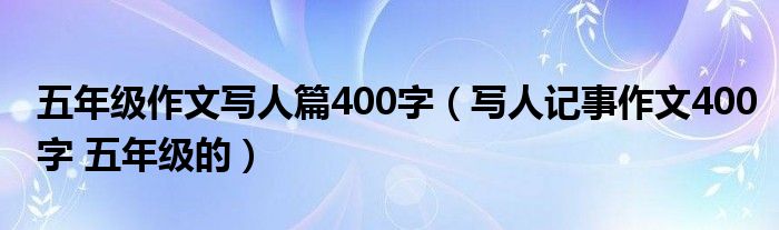 关于五年级作文写人篇400字,写人记事作文400字 五年级的这个很多人还不知道,今天菲菲来为大家解答以上的问题,现在让我们一起来看看吧!