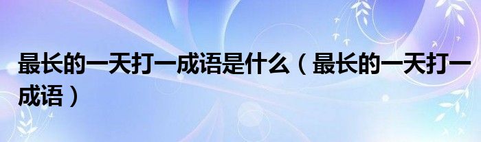 最长的一天打一成语是什么,最长的一天打一成语这个很多人还不知道,小飞来为大家解答以上的问题。现在让我们一起来看看吧!