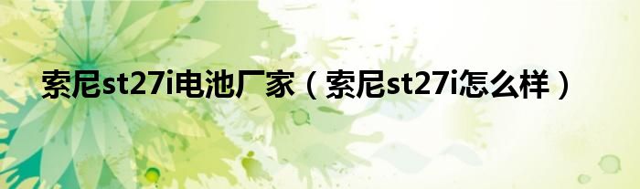 大家好,小飞来为大家解答以上问题,索尼st27i电池厂家,索尼st27i怎么样很多人还不知道,现在让我们一起来看看吧!