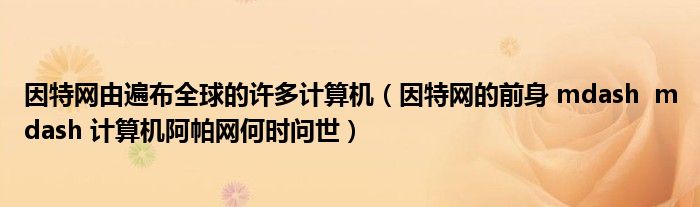 关于因特网由遍布全球的许多计算机,因特网的前身 mdash mdash 计算机阿帕网何时问世这个很多人还不知道,今天菲菲来为大家解答以上的问题,现在让我们一起来看看吧!