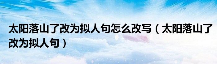 大家好,小晋来为大家解答以下问题,关于太阳落山了改为拟人句怎么改写,太阳落山了改为拟人句很多人还不知道,今天让我们一起来看看吧!