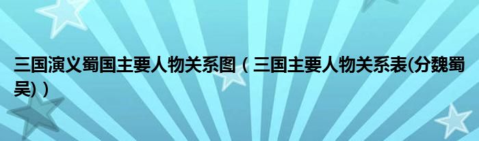关于三国演义蜀国主要人物关系图,三国主要人物关系表(分魏蜀吴)这个很多人还不知道,今天菲菲来为大家解答以上的问题,现在让我们一起来看看吧!