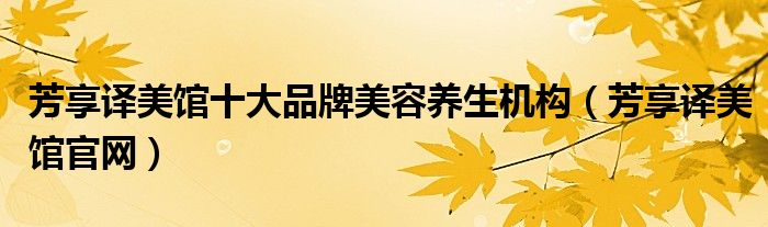 芳享译美馆十大品牌美容养生机构,芳享译美馆官网这个很多人还不知道,小飞来为大家解答以上的问题。现在让我们一起来看看吧!