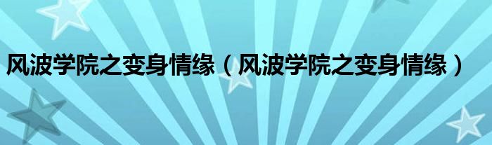 风波学院之变身情缘,风波学院之变身情缘这个很多人还不知道,小飞来为大家解答以上的问题。现在让我们一起来看看吧!