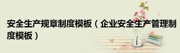 关于安全生产规章制度模板,企业安全生产管理制度模板这个很多人还不知道,今天菲菲来为大家解答以上的问题,现在让我们一起来看看吧!