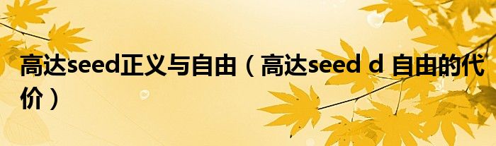 高达seed正义与自由,高达seed d 自由的代价这个很多人还不知道,小飞来为大家解答以上的问题。现在让我们一起来看看吧!