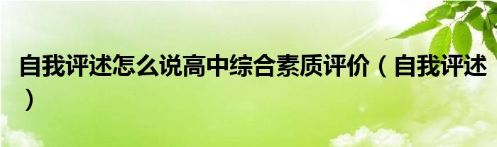 关于自我评述怎么说高中综合素质评价,自我评述这个很多人还不知道,今天菲菲来为大家解答以上的问题,现在让我们一起来看看吧!