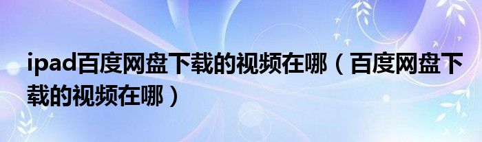 大家好,小晋来为大家解答以下问题,关于ipad百度网盘下载的视频在哪,百度网盘下载的视频在哪很多人还不知道,今天让我们一起来看看吧!
