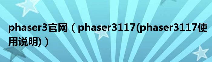 大家好,小常来为大家解答以上问题。phaser3官网,phaser3117(phaser3117使用说明)很多人还不知道,现在让我们一起来看看吧!