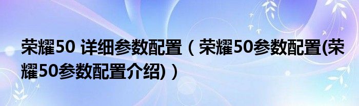 大家好,小常来为大家解答以上问题。荣耀50 详细参数配置,荣耀50参数配置(荣耀50参数配置介绍)很多人还不知道,现在让我们一起来看看吧!
