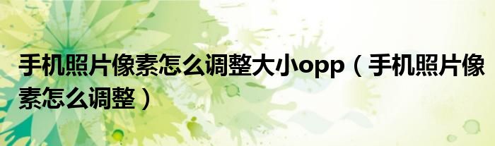 大家好,小晋来为大家解答以下问题,关于手机照片像素怎么调整大小opp,手机照片像素怎么调整很多人还不知道,今天让我们一起来看看吧!