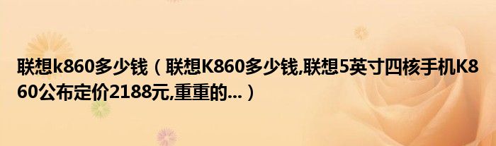 大家好,小常来为大家解答以上问题。联想k860多少钱,联想K860多少钱,联想5英寸四核手机K860公布定价2188元,重重的...很多人还不知道,现在让我们一起来看看吧!