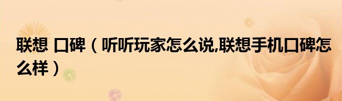大家好,小常来为大家解答以上问题。联想 口碑,听听玩家怎么说,联想手机口碑怎么样很多人还不知道,现在让我们一起来看看吧!