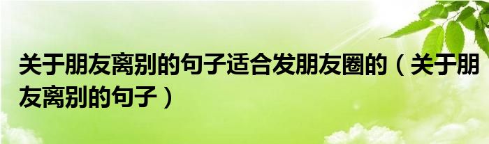 关于关于朋友离别的句子适合发朋友圈的,关于朋友离别的句子这个很多人还不知道,今天菲菲来为大家解答以上的问题,现在让我们一起来看看吧!