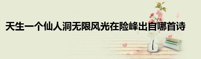 关于天生一个仙人洞无限风光在险峰出自哪首诗这个很多人还不知道,今天菲菲来为大家解答以上的问题,现在让我们一起来看看吧!