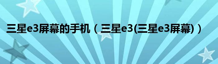 大家好,小常来为大家解答以上问题。三星e3屏幕的手机,三星e3(三星e3屏幕)很多人还不知道,现在让我们一起来看看吧!