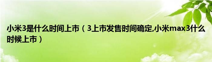 大家好,小常来为大家解答以上问题。小米3是什么时间上市,3上市发售时间确定,小米max3什么时候上市很多人还不知道,现在让我们一起来看看吧!