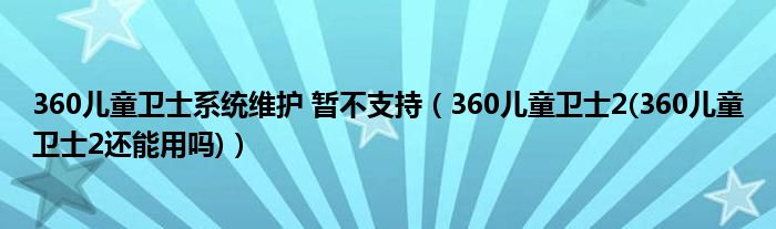 大家好,小常来为大家解答以上问题。360儿童卫士系统维护 暂不支持,360儿童卫士2(360儿童卫士2还能用吗)很多人还不知道,现在让我们一起来看看吧!