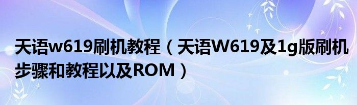 4,天语W619卡刷刷机教程请教:您好 ,下面是教程:这个是CPU800的教程,(设置-系统设置-关于本机查看)1G的请追问。http://wenku.baidu.com/view/0fca1d49767f5acfa1c7cde6.html