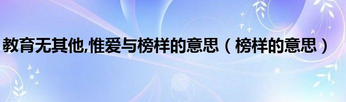 关于教育无其他,惟爱与榜样的意思,榜样的意思这个很多人还不知道,今天菲菲来为大家解答以上的问题,现在让我们一起来看看吧!