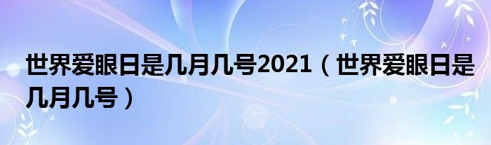关于世界爱眼日是几月几号2021,世界爱眼日是几月几号这个很多人还不知道,今天菲菲来为大家解答以上的问题,现在让我们一起来看看吧!
