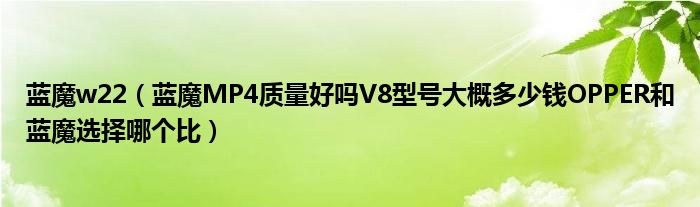 大家好,小常来为大家解答以上问题。蓝魔w22,蓝魔MP4质量好吗V8型号大概多少钱OPPER和蓝魔选择哪个比很多人还不知道,现在让我们一起来看看吧!