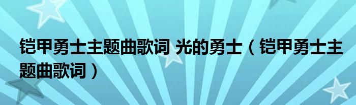 关于铠甲勇士主题曲歌词 光的勇士,铠甲勇士主题曲歌词这个很多人还不知道,今天菲菲来为大家解答以上的问题,现在让我们一起来看看吧!
